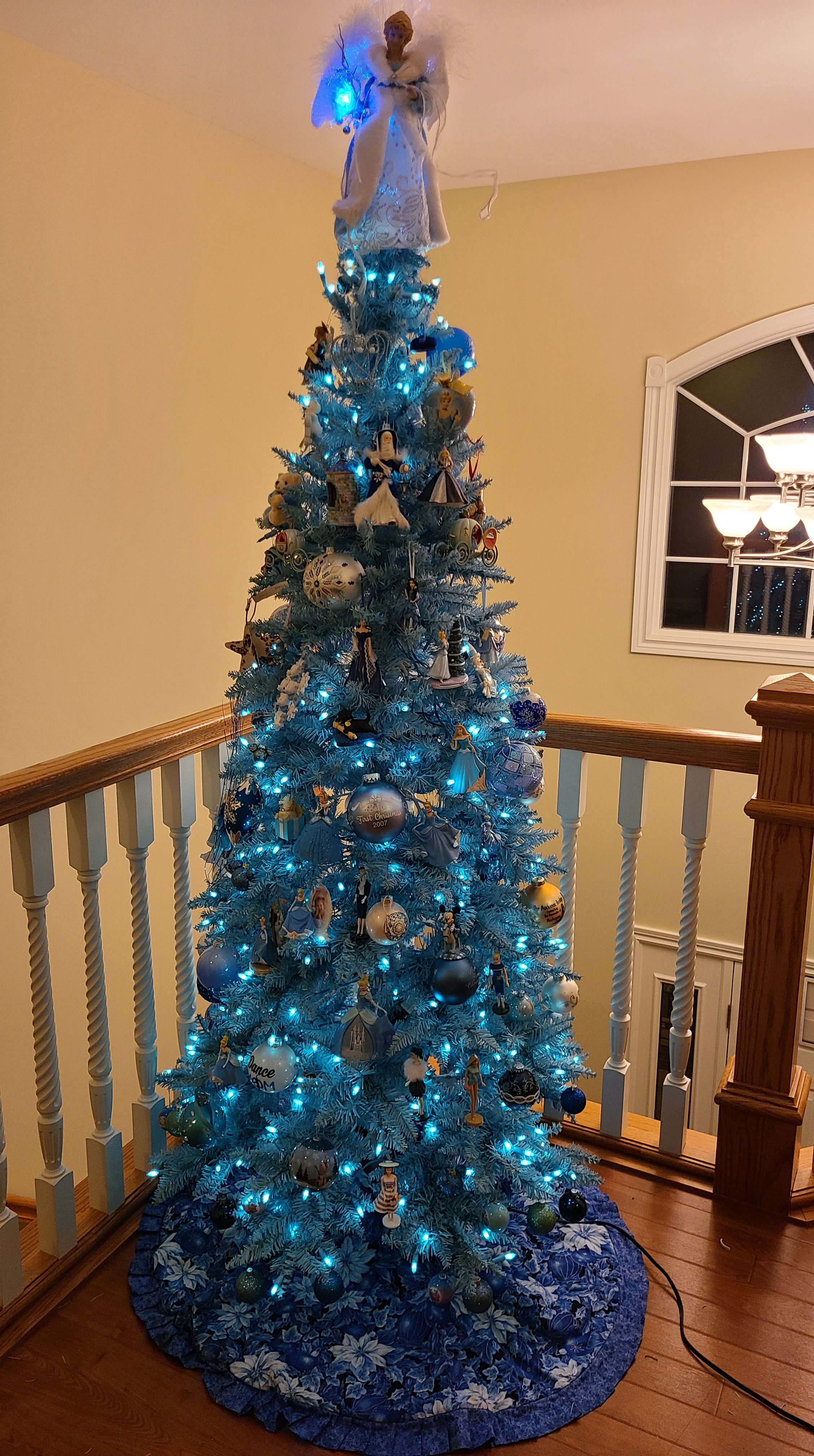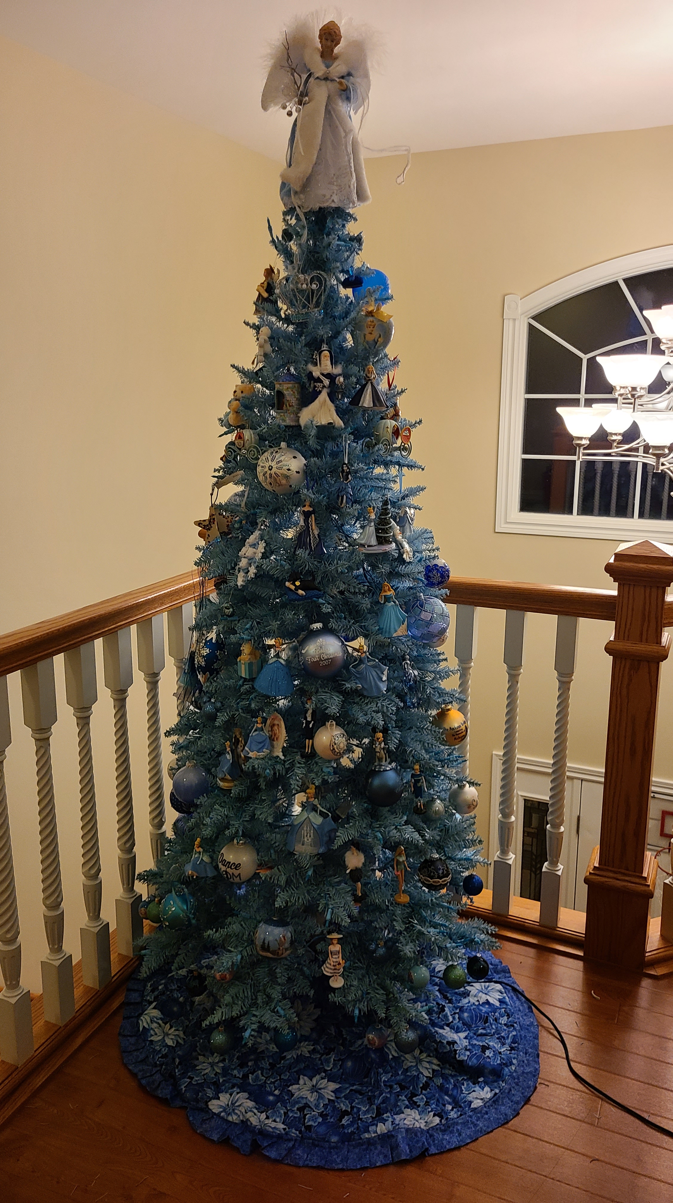 Moving to the upstairs landing #22 is the blue tree with blue ornaments.