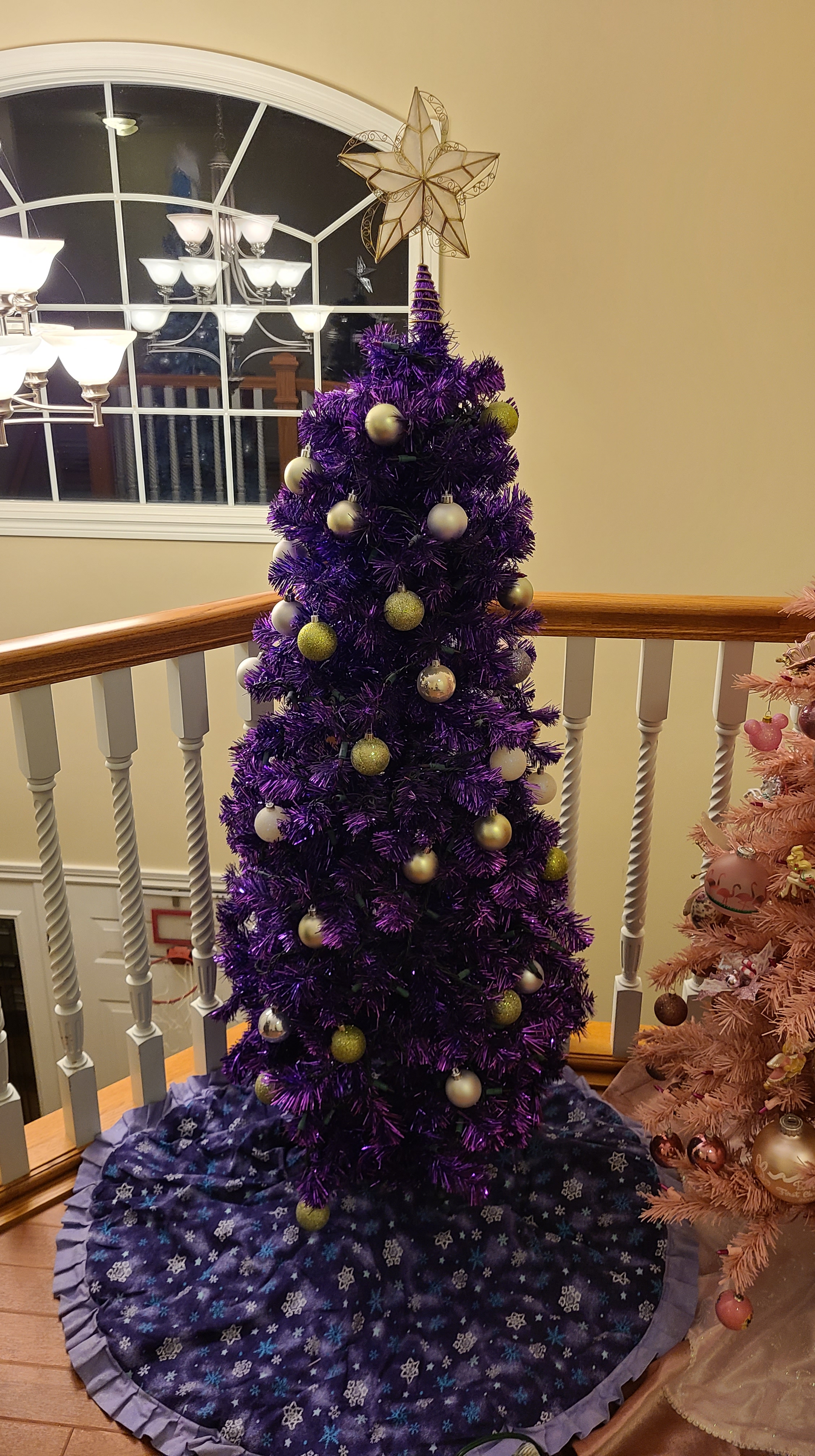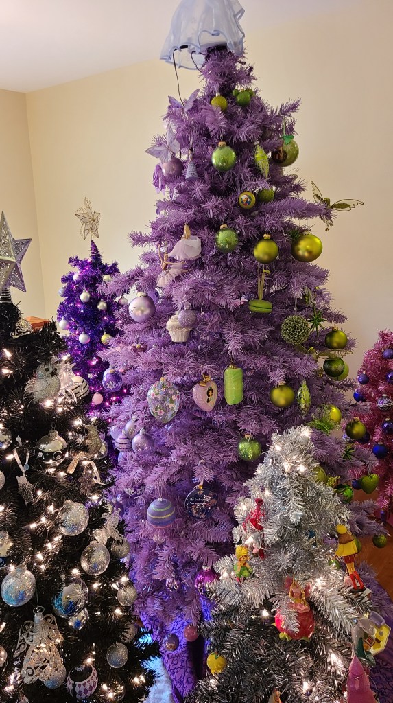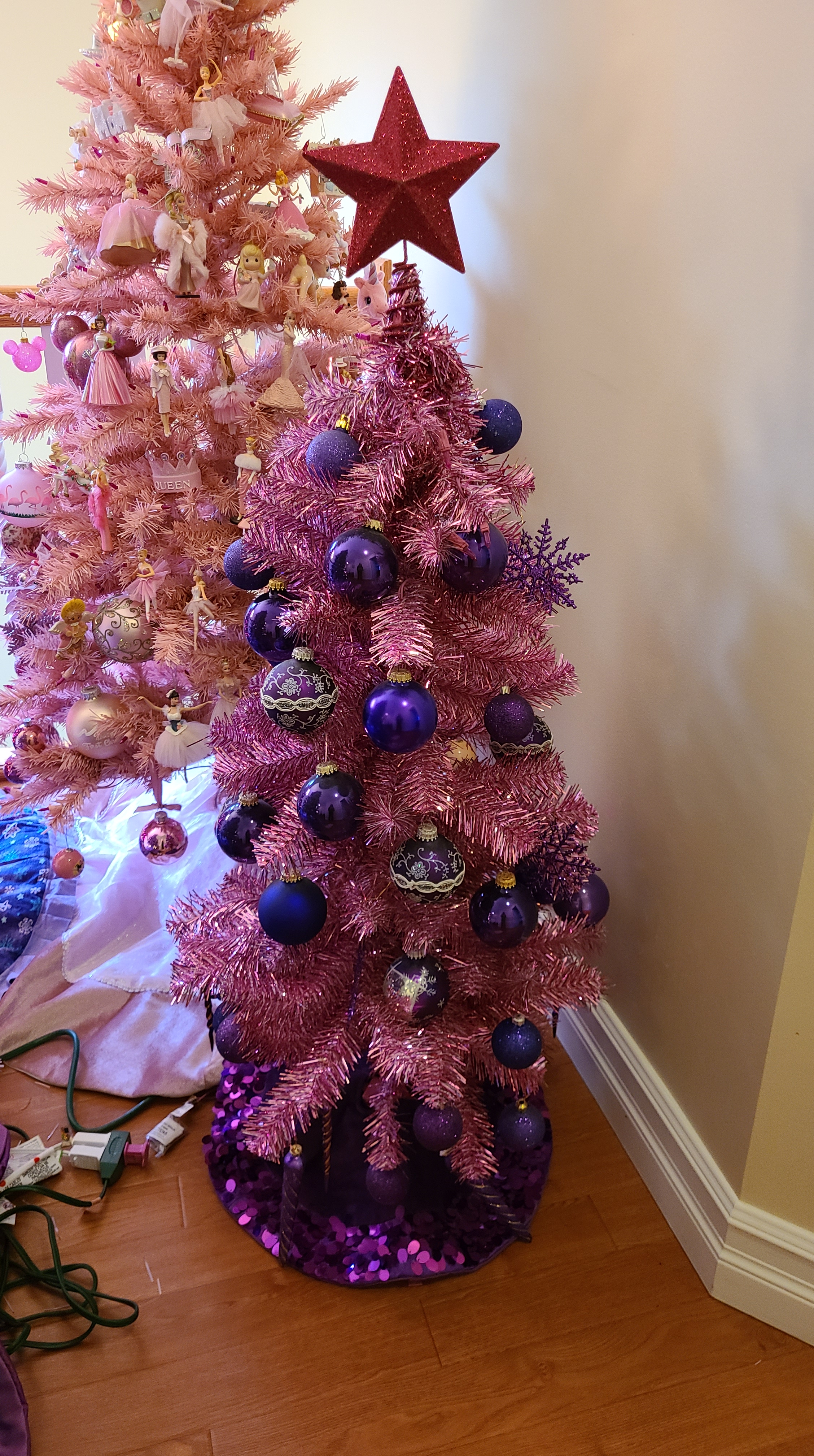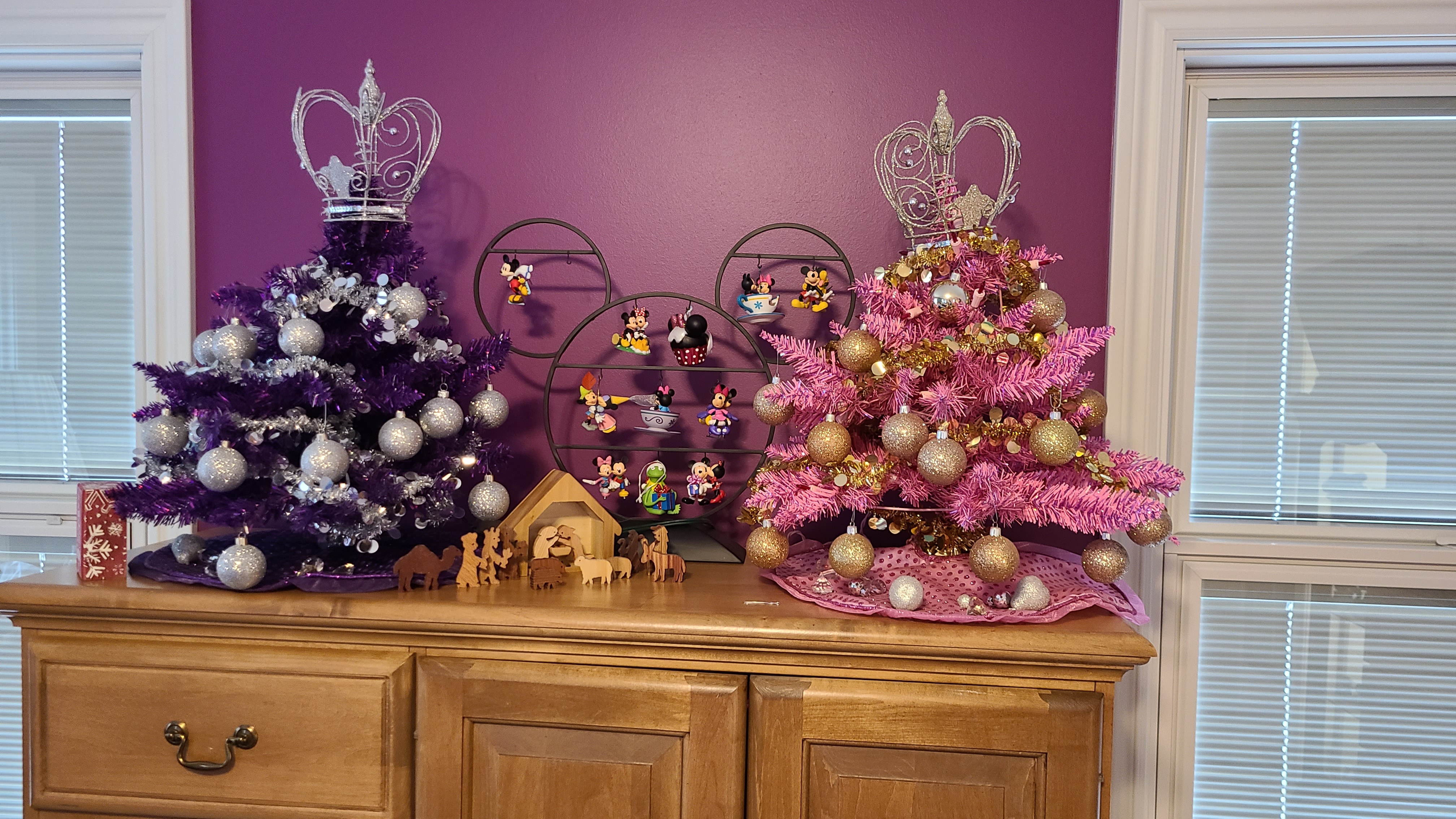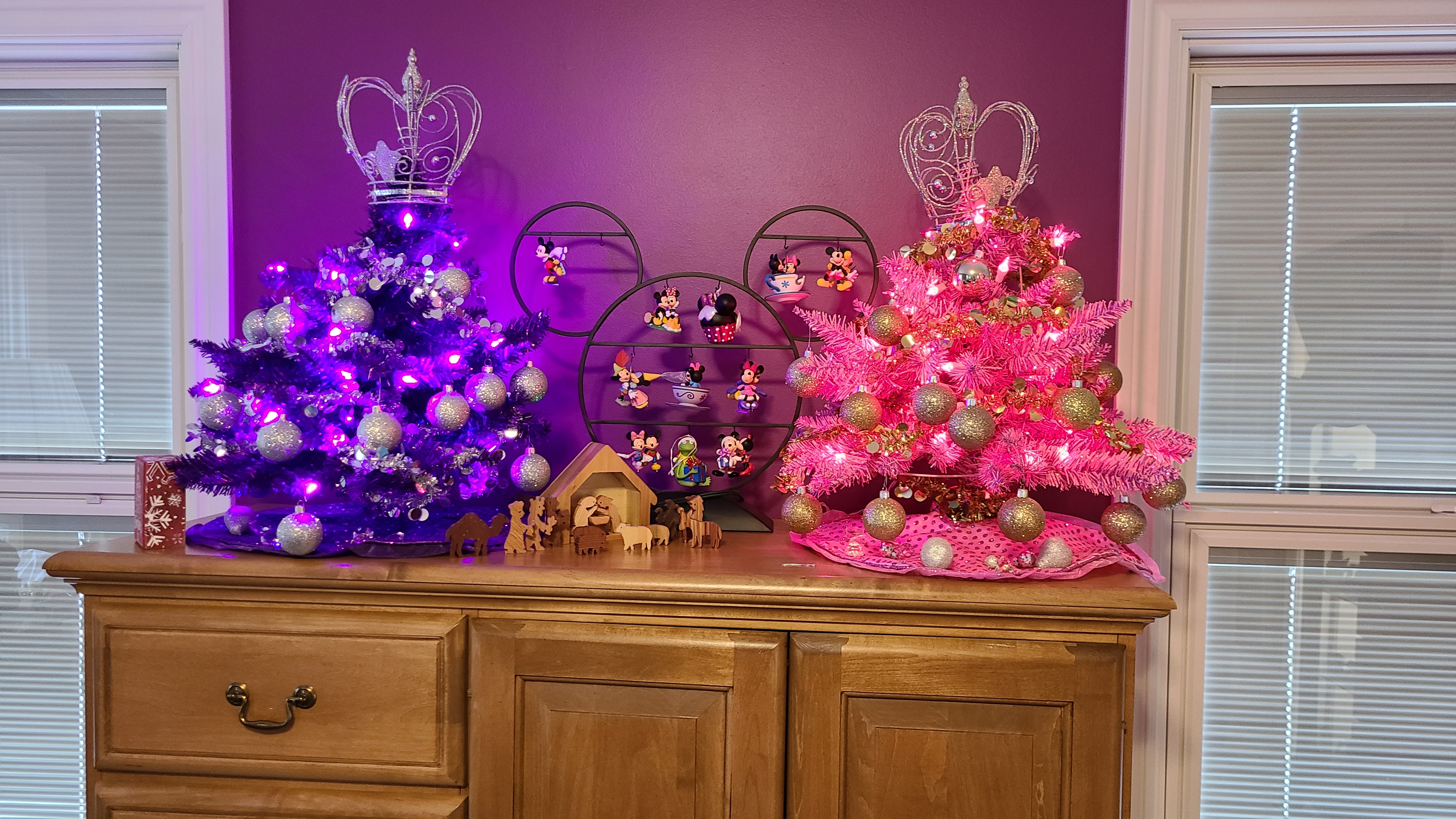 Moving upstairs to our bedroom, purple (#19), Mickey ornament tree (#20), and pink (#21).