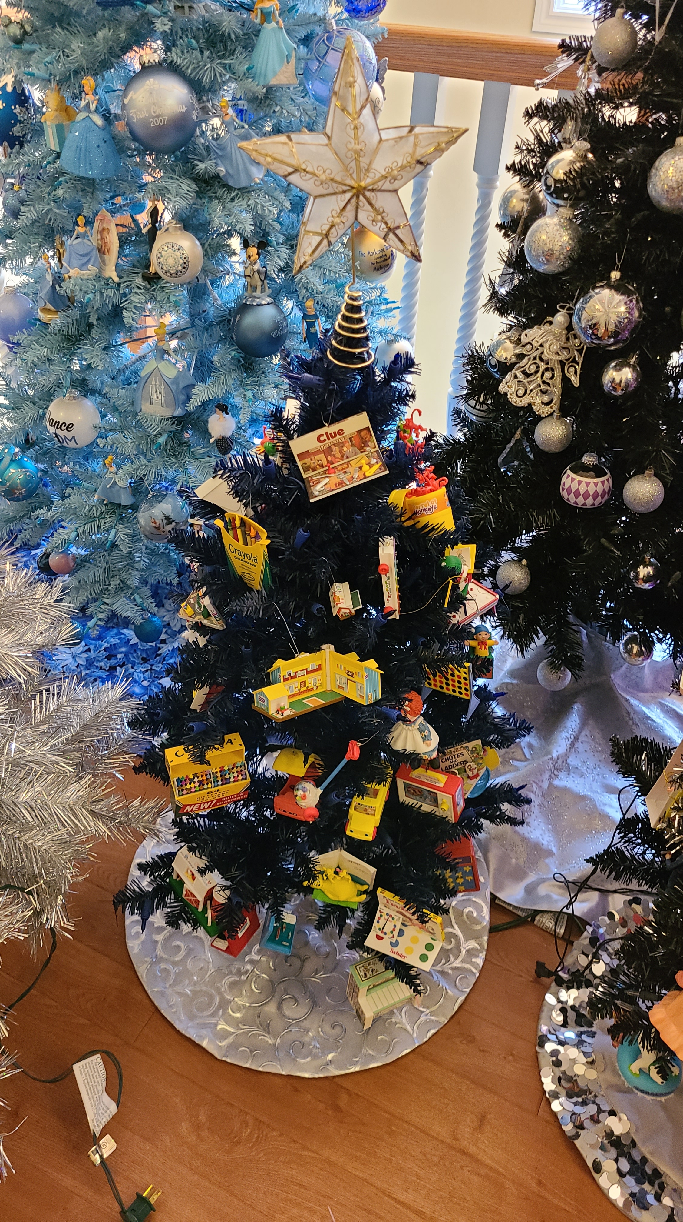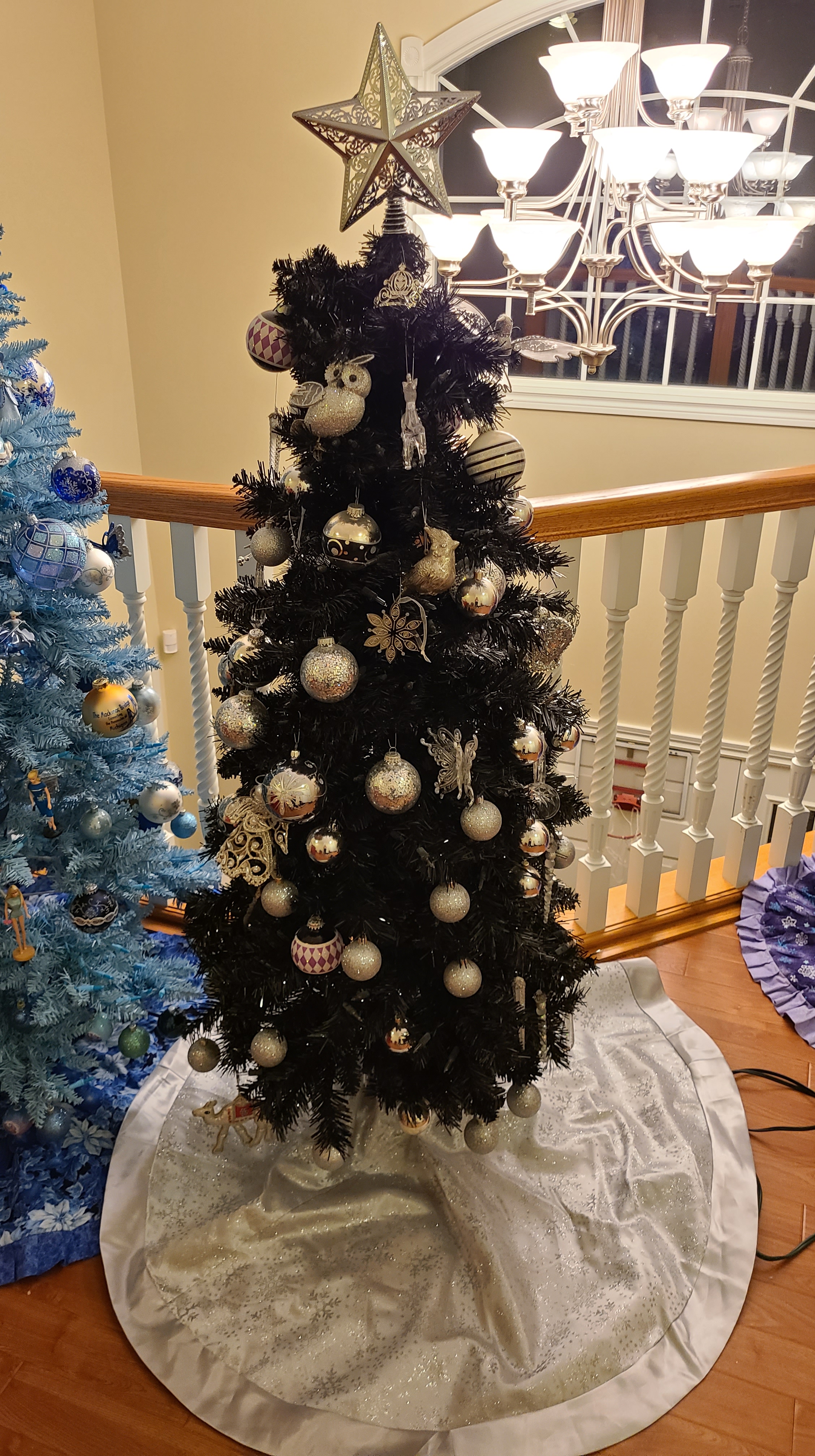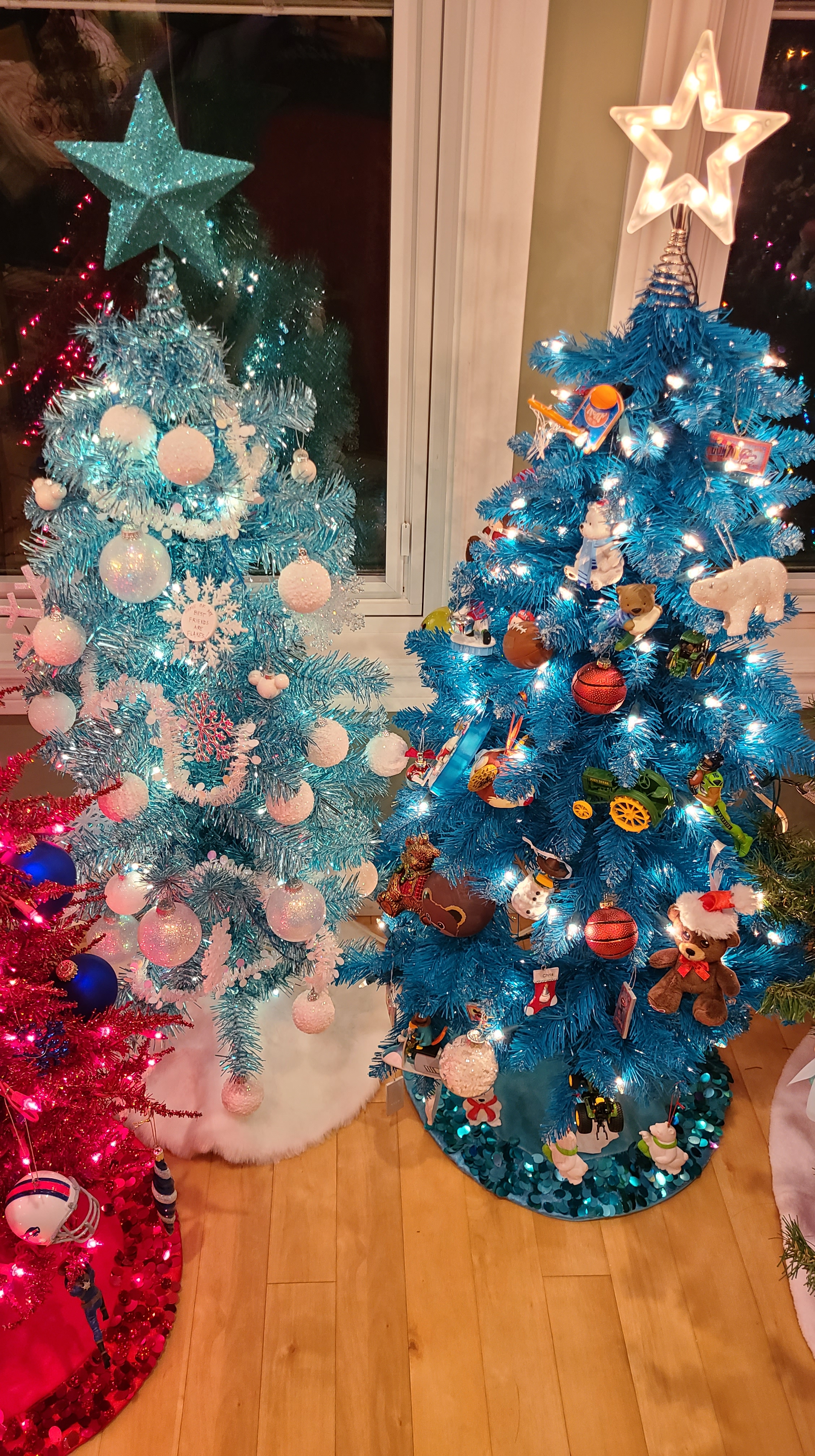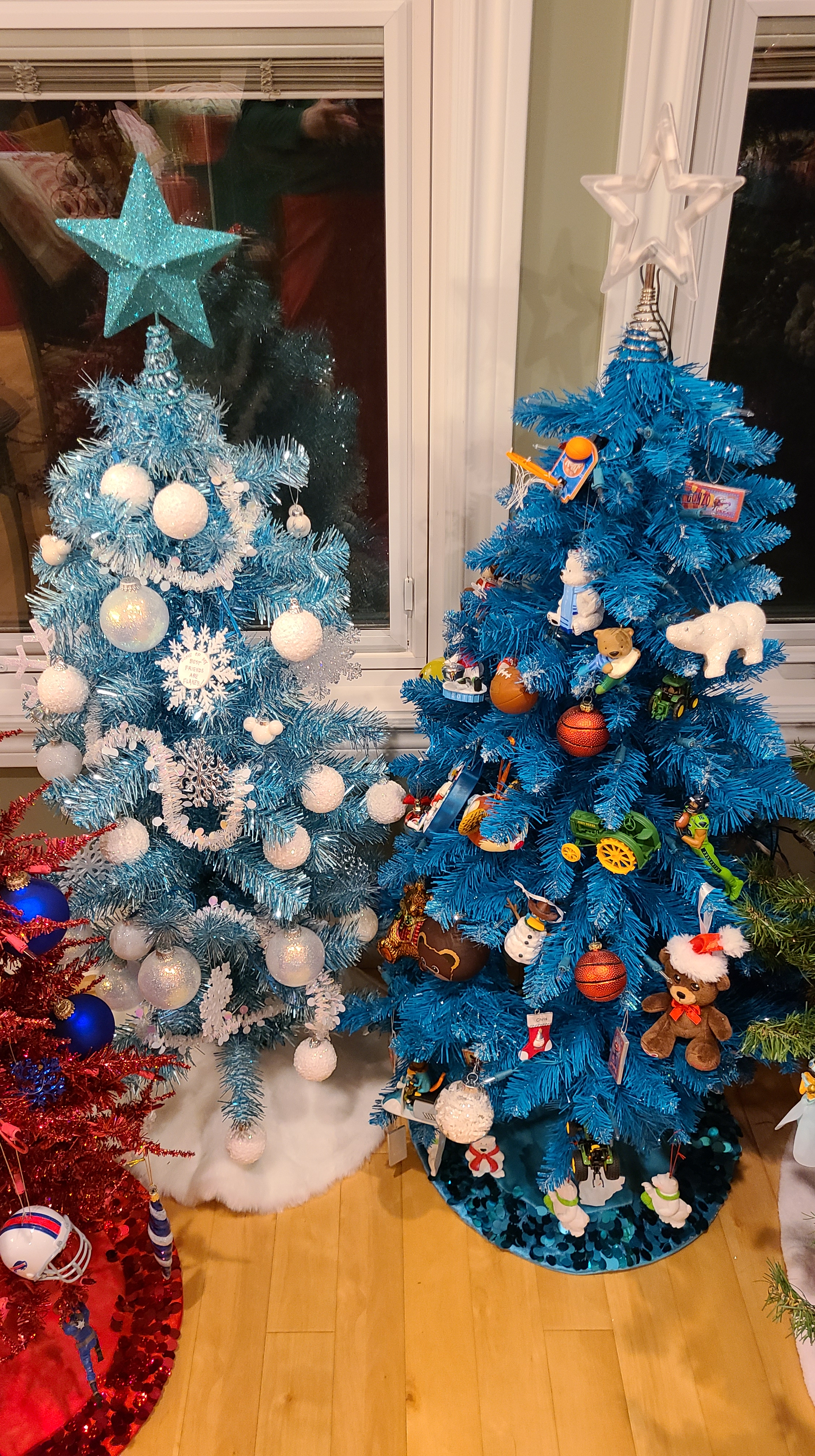 Number 12 is the blue snow tree and Number 13 is also blue with ornaments that technically belong to our son. The tree used to be in his room, but now resides downstairs.