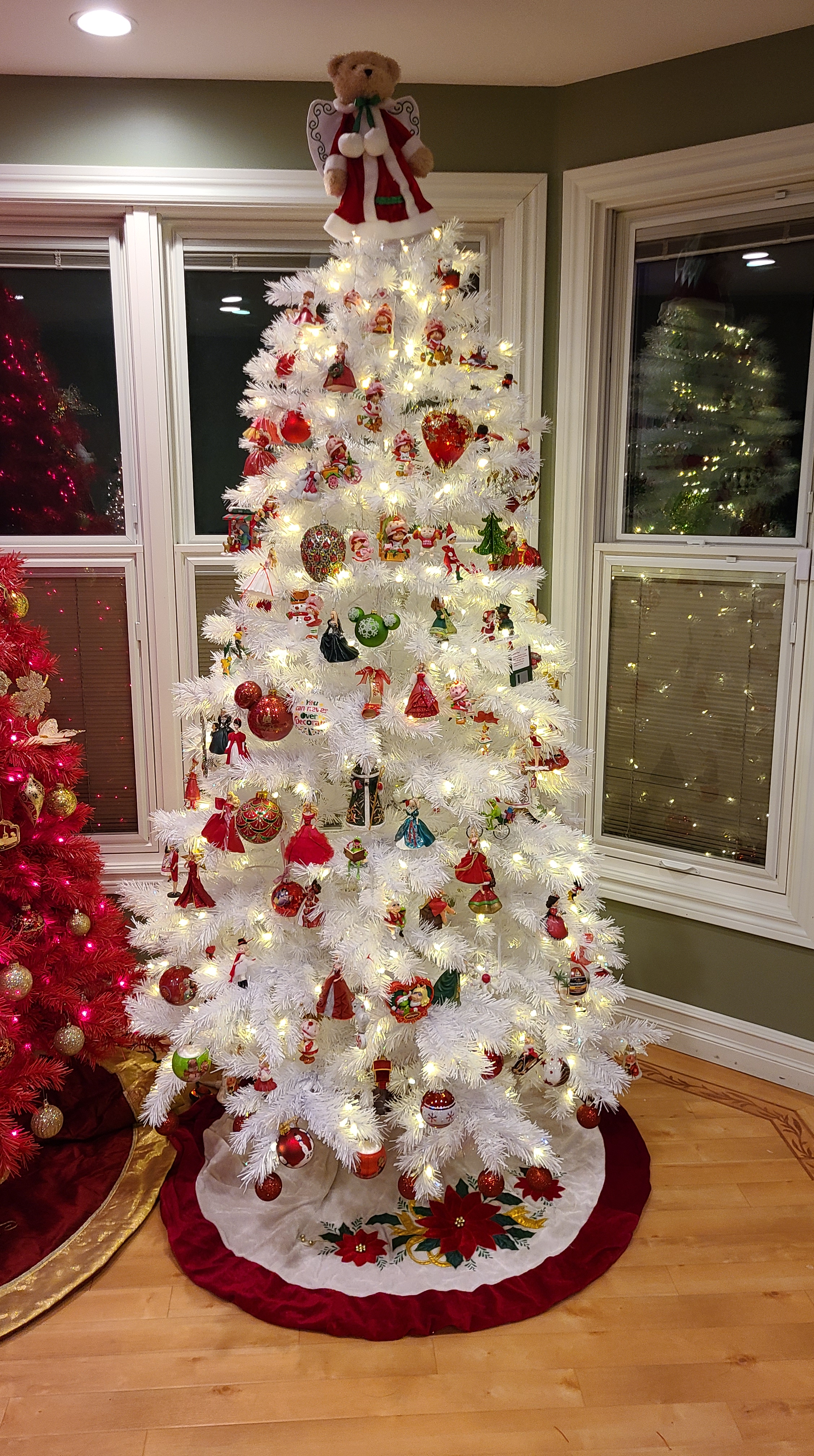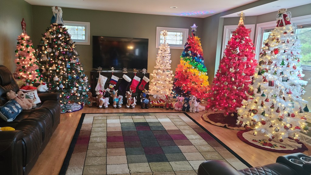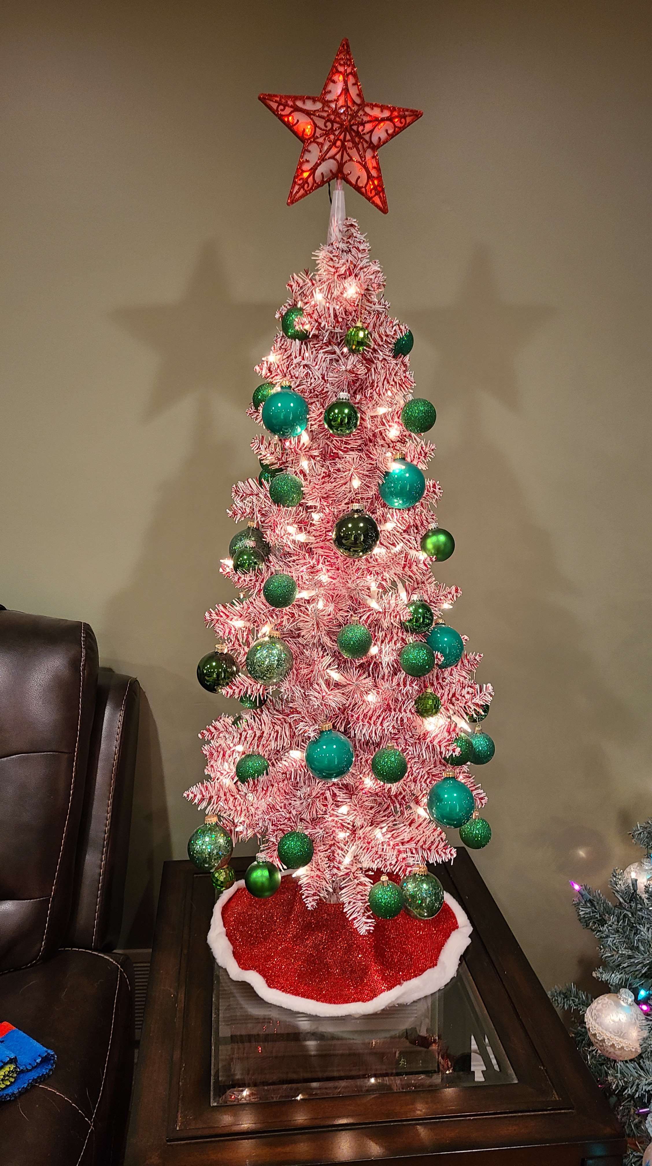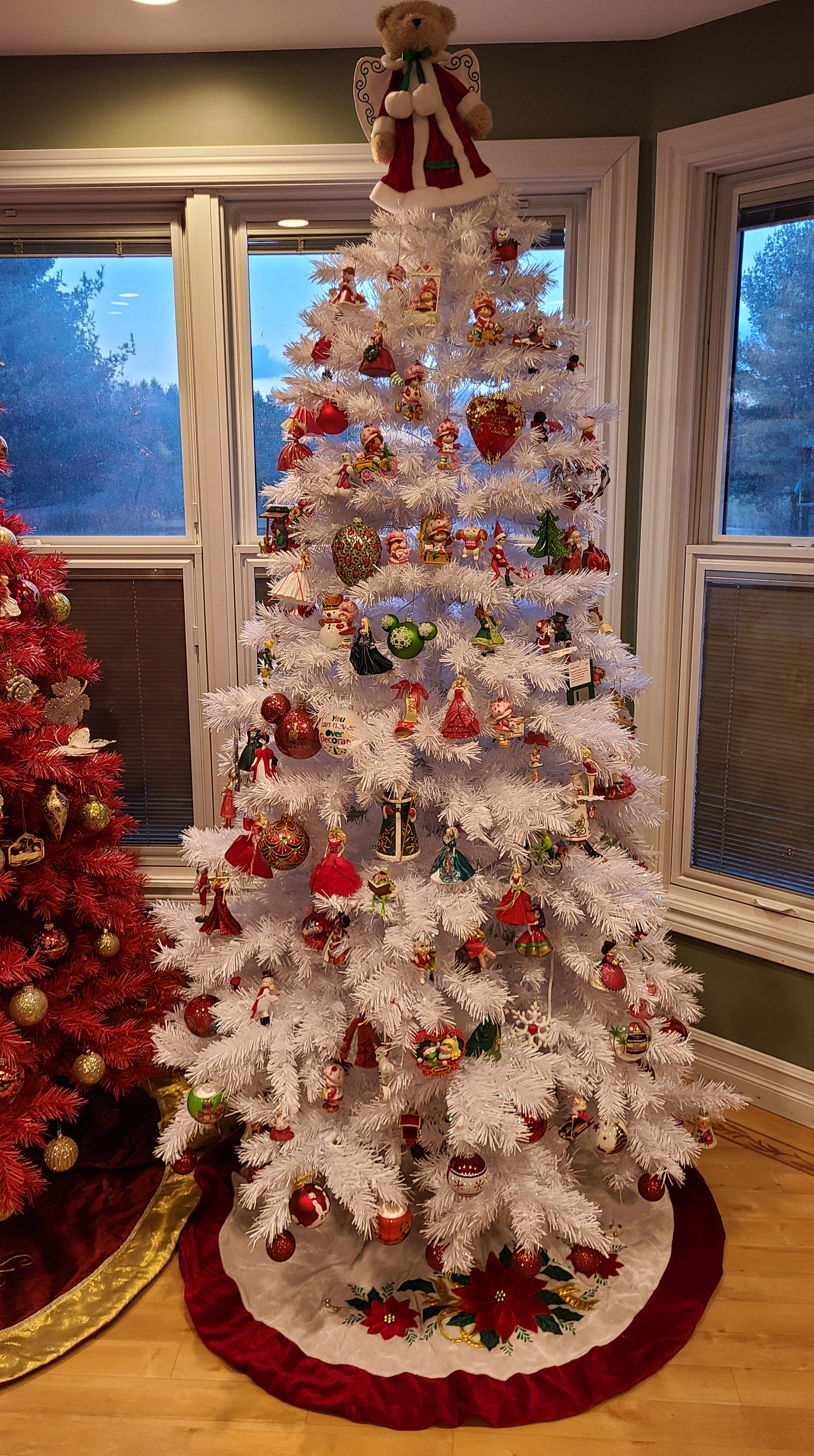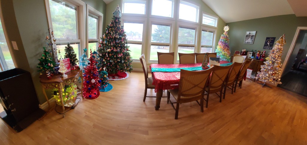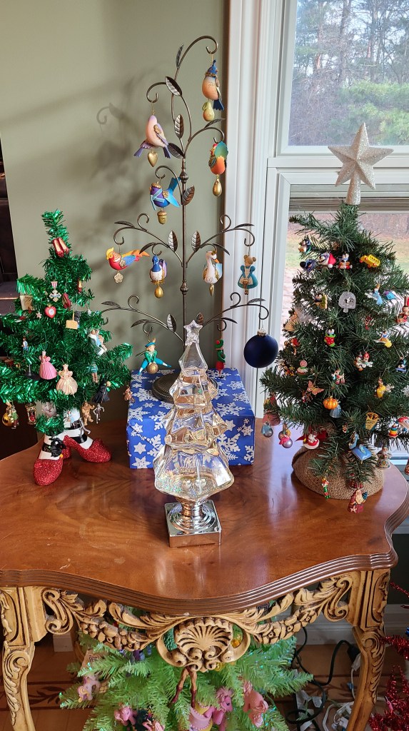 Number 12 is the blue snow tree and Number 13 is also blue with ornaments that technically belong to our son. The tree used to be in his room, but now resides downstairs.